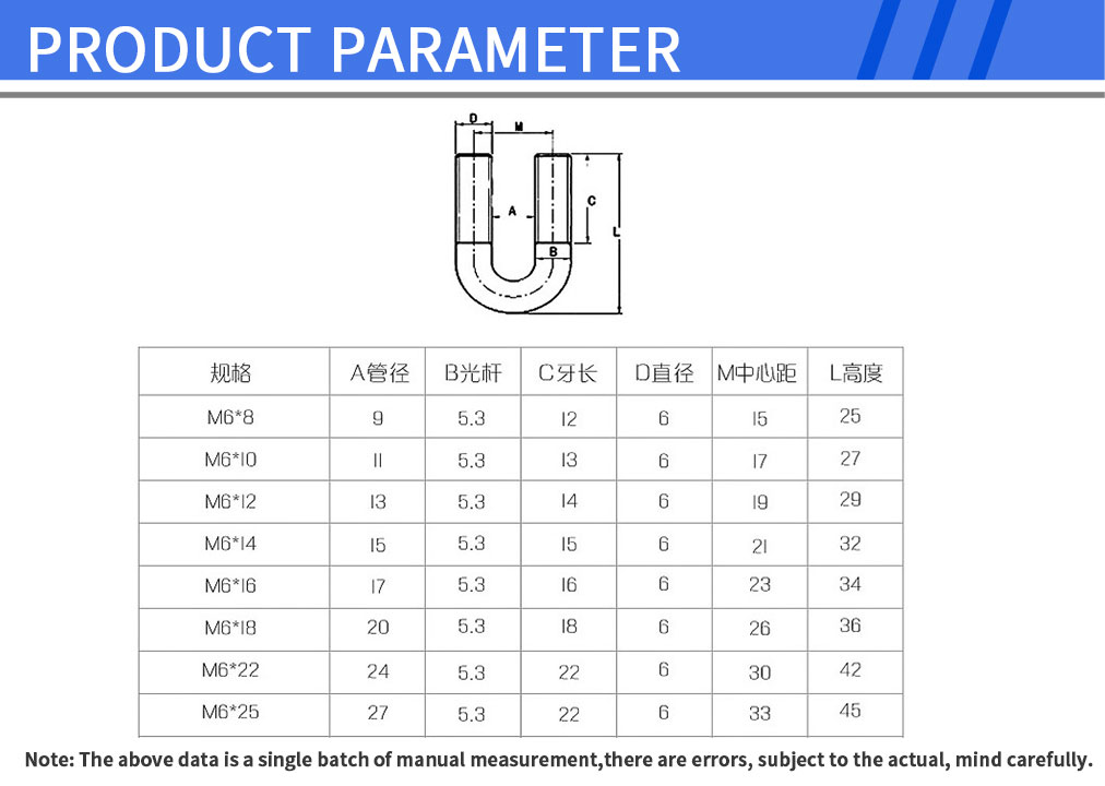 304不锈钢U型螺钉.▍ M6M8M10M12M16