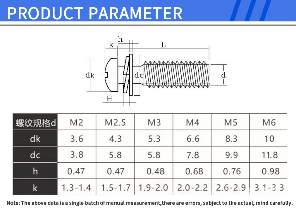 组合螺钉十字圆头三组合螺丝 ▍ M3M4M5M2.5M3M4M5M6 ▍ 镀镍▍ 10B21碳钢 ▍ GB102-86