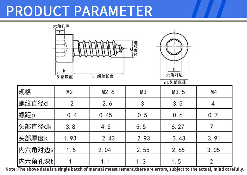 304六角圆柱头自攻螺丝 ▍ M2M2.6M3M3.5 ▍ 304 不锈钢 ▍ GB/T 2670.1-2017