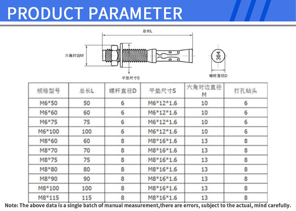 不锈钢304膨胀螺丝地脚螺栓连接件高铁电梯膨胀M6-M24车修壁虎
